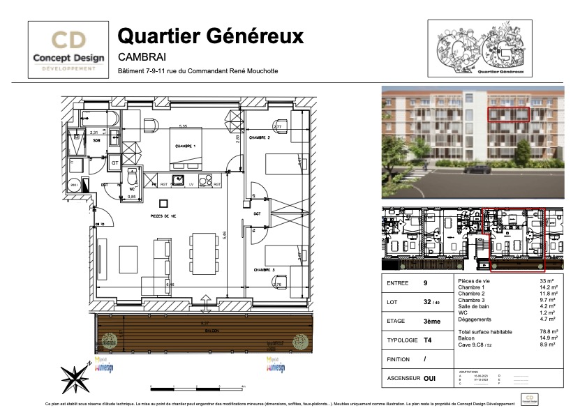d’un ascenseur, d’une résidence calme et bien entretenue, et d’un agencement optimisé sans perte d’espace.