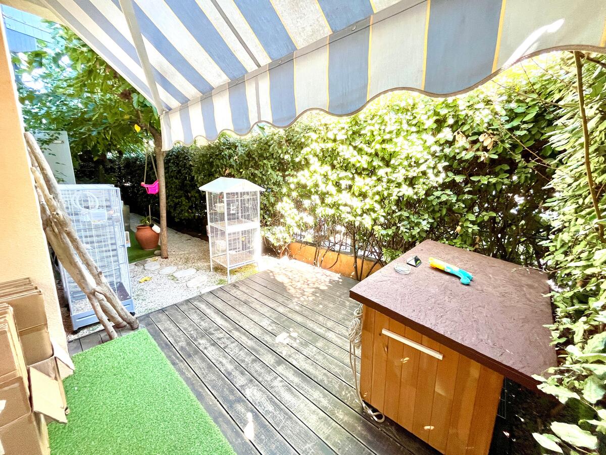 L’appartement dispose également de deux jardins privatifs d’une surface totale d’environ 100 m², offrant un bel espace extérieur.