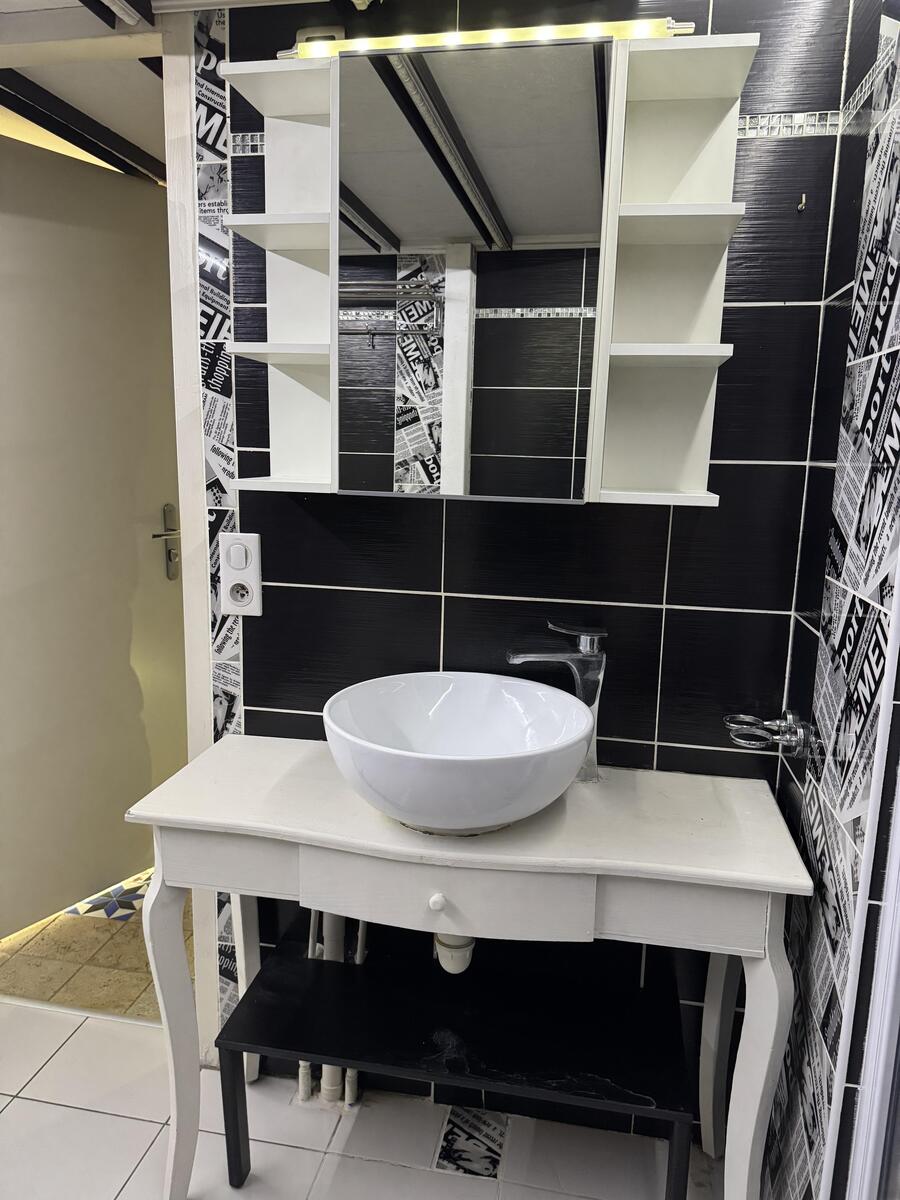 À l’étage, vous découvrirez une mezzanine avec une chambre spacieuse d’environ 15 m². Une seconde partie de mezzanine d’environ 14 m² au sol complète cet espace, bien que celle-ci ne soit pas comptabilisée dans la surface Carrez en raison d’une hauteur sous plafond inférieure à 1,80 m.