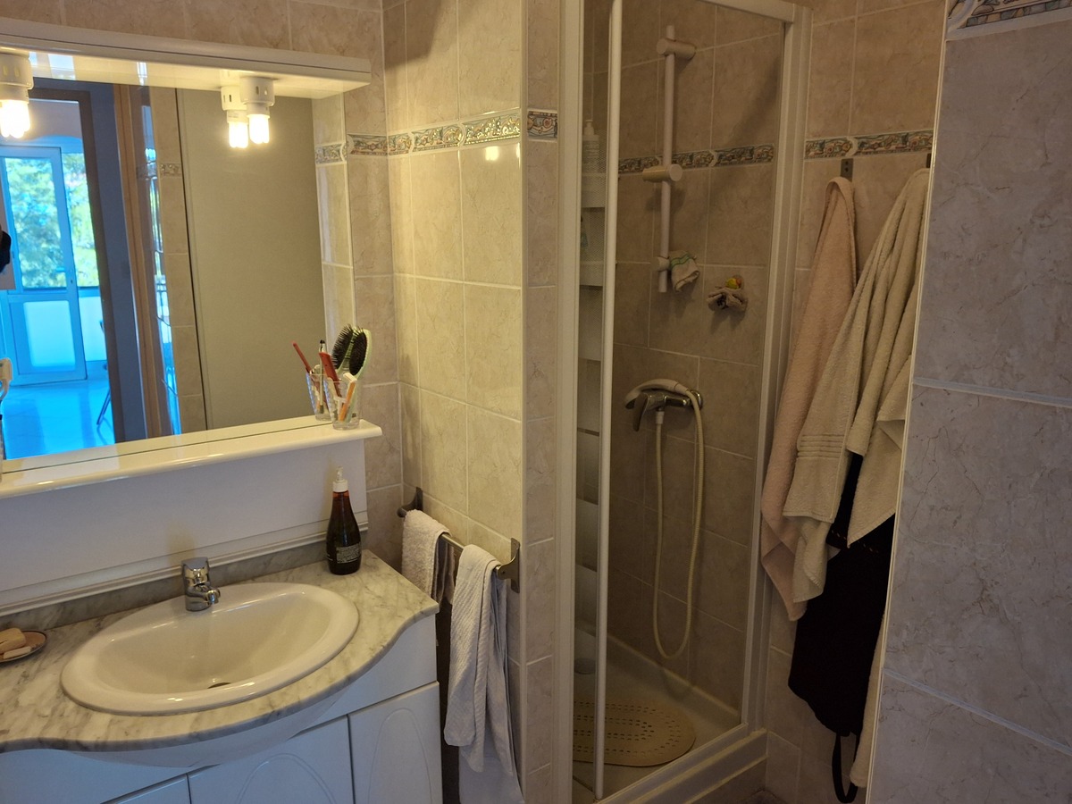 Pour l'espace nuit, nous avons une salle de d'eau disposant d’une douche, et une belle chambre.