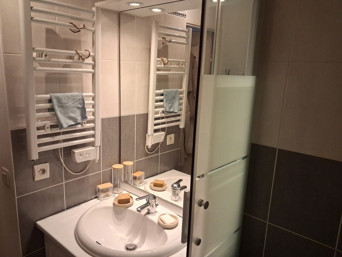 La salle d’eau est moderne et dispose d’une douche ( 80x120) et d'un WC.