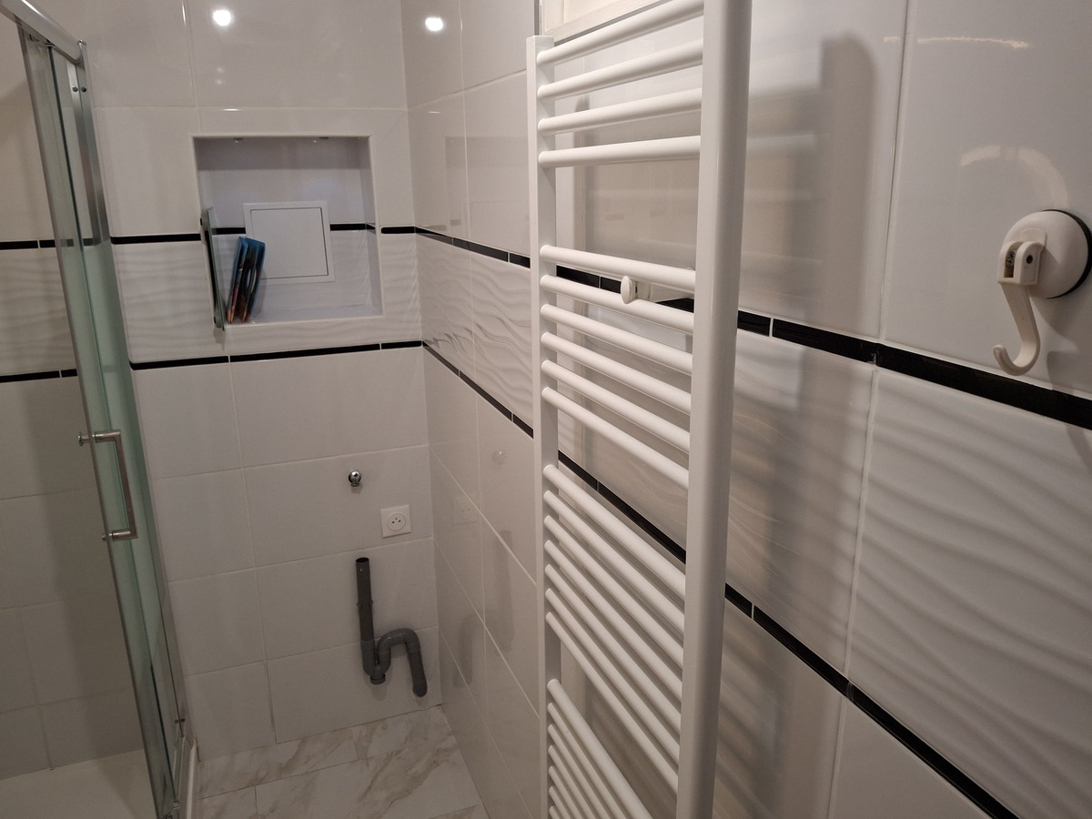 Pour l'espace nuit, nous avons deux chambres, une salle d'eau et un toilette séparé.