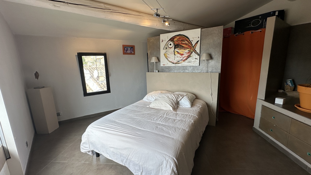 Par un escalier, on accède au souplex, véritable espace de détente. Ce niveau abrite un salon cosy faisant office de bibliothèque et de salle télé, une chambre confortable ainsi qu’une salle d’eau équipée d’un hammam, offrant une touche de bien-être unique. Une terrasse couverte permet également de profiter de moments paisibles en toute saison.