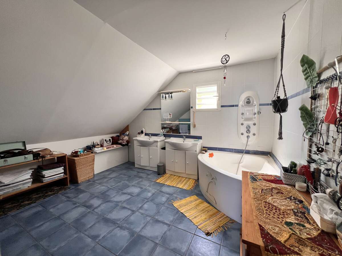 À l'étage vous trouverez: deux chambres confortables (12 et 13m2), un dressing, une grande salle de bains (11m2) et un WC séparé