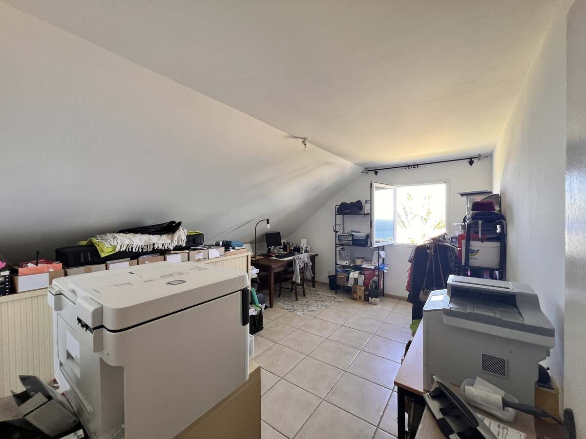 Maison lumineuse composée au rez-de-chaussée : d'une entrée accueillante, une buanderie, un spacieux séjour , un bureau idéal pour le télétravail, une salle d'eau et un WC séparé. Une cuisine donnant sur une terrasse avec vue imprenable sur l'océan complète cette partie.