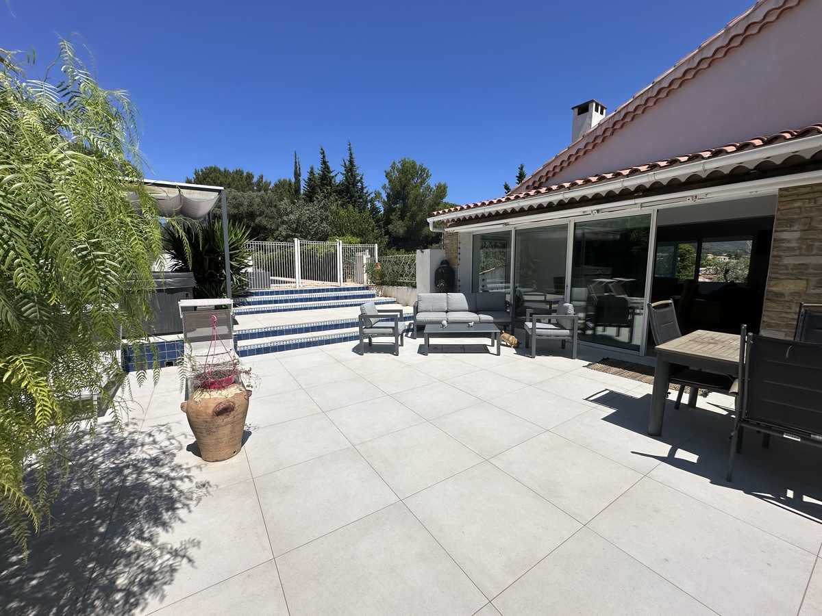 Superbe maison de 220m2 entièrement rénovée sur 1600 m2 de terrain, du sol au plafond, façade, terrasse, cuisine, chambres et salles de bain, située à Sanary sur mer, dans le quartier prisé de la Poussarague. À seulement 900 mètres de la plage de la Gorguette et à 1 kilomètre du port de Sanary, cette propriété offre un cadre de vie exceptionnel.
