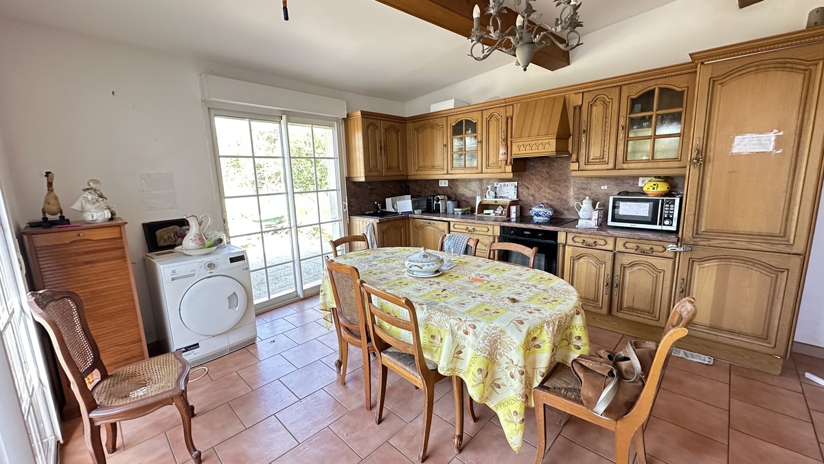 A l'extérieur, le terrain plat offre de nombreuses possibilités d’aménagement paysager, à personnaliser selon vos envies. La cuisine donne accès avec deux ouvertures sur la terrasse, permettant de profiter d’un espace extérieur agréable.